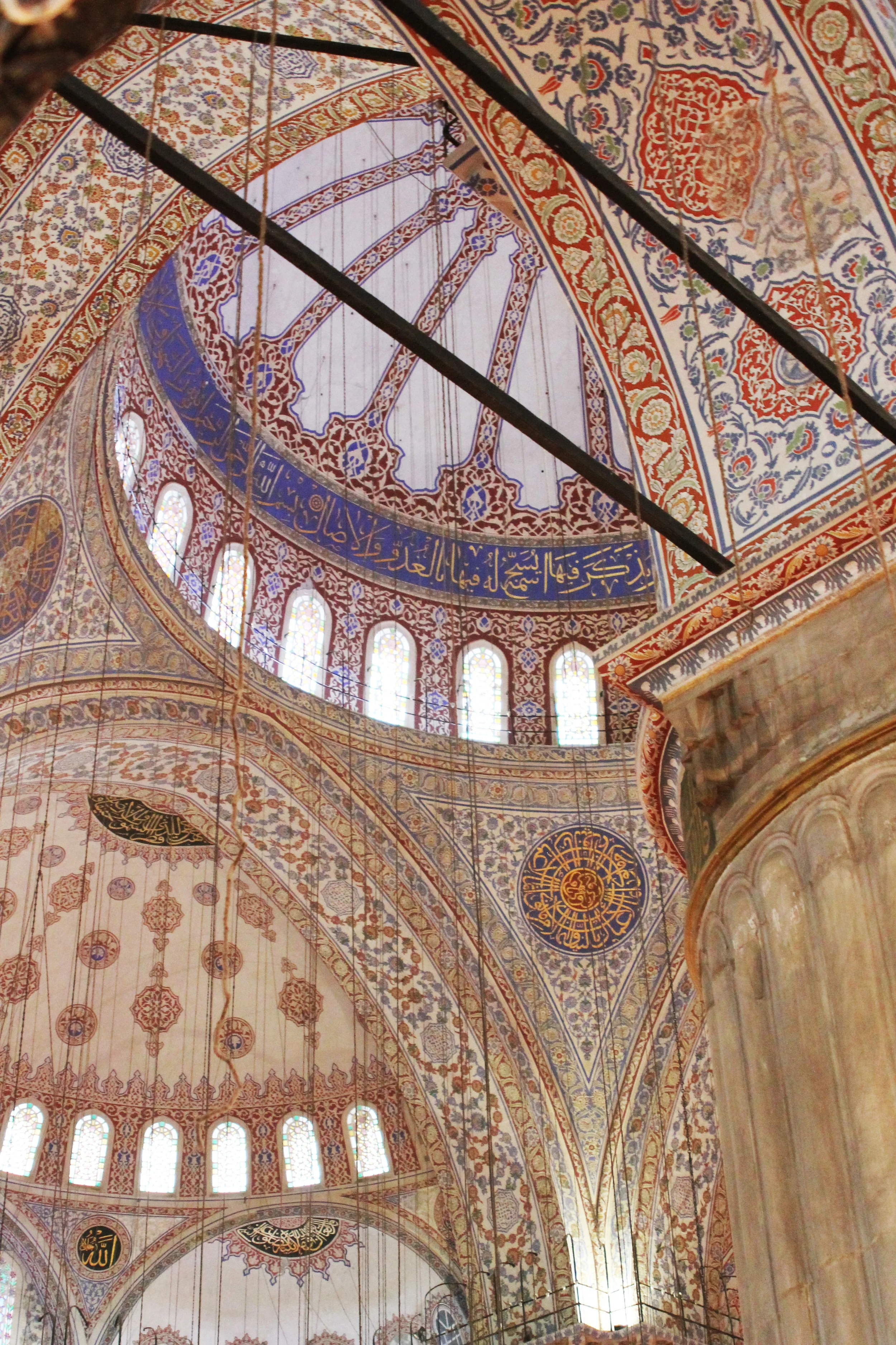 You can see in this photo of the blue tiled ceiling of the Sultan Ahmed Mosque that the tiles still have amazing color even though they are 400 years old! These tiles were created by grinding cobalt stones but it was the use of quartz that was added to the clay that has made it possible for these tiles to retain their vibrant color over the centuries. The quartz is ground and added to the white clay giving the clay strength and, thereby, longevity.